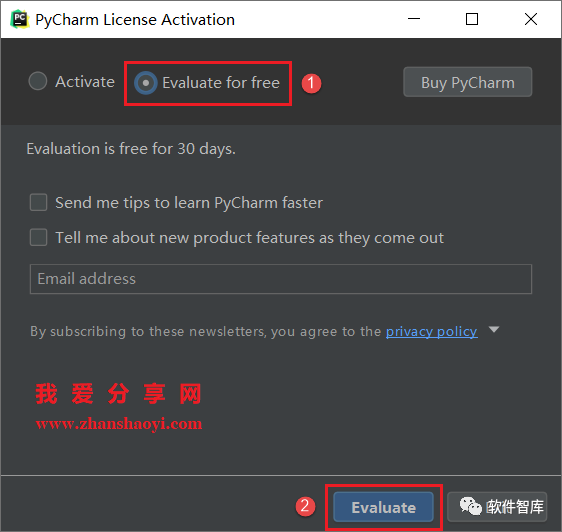 13.先勾選“Evaluate for free”,然后單擊【Evaluate】